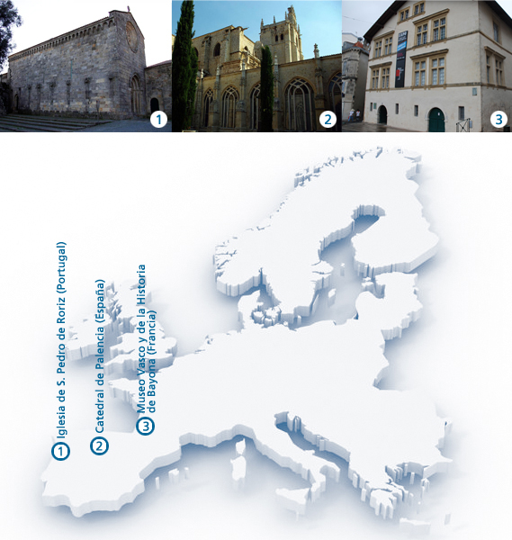 Estos casos piloto son la catedral de Palencia, edificio incluido en el espacio Smart City Valladolid-Palencia, el Museo Vasco y de la Historia de Bayona en Francia y en la iglesia de Roriz, una pequeña población portuguesa, cercana a Oporto, incluida en el Plan de Intervención Románico Atlántico. De esta manera se hace un barrido a diferentes ubicaciones (rural y urbano), distintos usos del edificio (desde el religioso hasta el cívico), climatología seca y húmeda, de forma que los resultados del proyecto puedan tener una aplicación lo más universal posible.